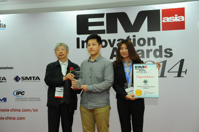 2014.4.24上海NEPCON展传来喜讯,米兰科技自主研发的国内首款集160KV高电压、1μm开放式微聚焦射线管及3D CT扫描等多种高端技术于一体的X射线检测仪AX8800获得2014EM ASIA年度“创新奖”,此次获奖已是米兰科技连续4年成功蝉联此大奖。此前米兰科技的微聚焦X射线检测设备AX7300、AX8200、AX8600凭借其高性能和客户的广泛认可,均获得该奖项的年度大奖。